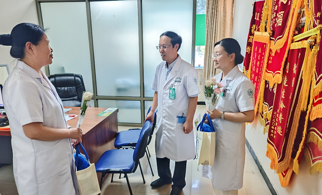 会议开始前,郑州德馨医院业务院长田晨光教授与医务科,向部分门诊、临床及医技科室,为坚守岗位的医生和医技人员送上象征敬意的鲜花与节日慰问品。